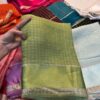 A soothing green drape crafted in pure viscose georgette, highlighted with delicate chex weaving and finished with a graceful satin patta border. Effortlessly elegant and timeless — a perfect choice for day functions and classy gatherings.